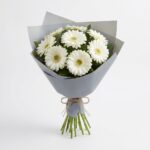 Beyaz Gerbera Buketi, Beyaz Gerbera çiçeğinin neşeli ve enerjik karakterini öne çıkaran bir tasarımdır. doğum günü, kutlama, mezuniyet gibi anlarda doğru mesajı verir; çiçek başları, boy ve renk uyumu kontrol edilerek seçilir.